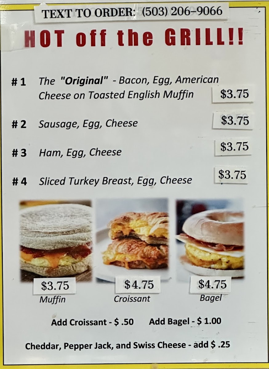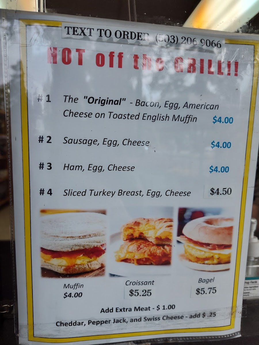 This menu is suitable for breakfast and light meals, providing options ideal for a quick order or casual dining experience. Customers typically choose from a range of freshly prepared sandwiches and light bites, paired with coffee or other beverages.